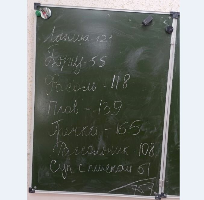 Итого за вчерашний день было нафасовано 767 порций различных блюд.