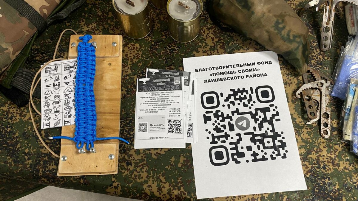Волонтеры благотворительной организации «Помощь СВОим» Лаишевского района Татарстана плетут браслеты выживаемости для участников спецоперации.