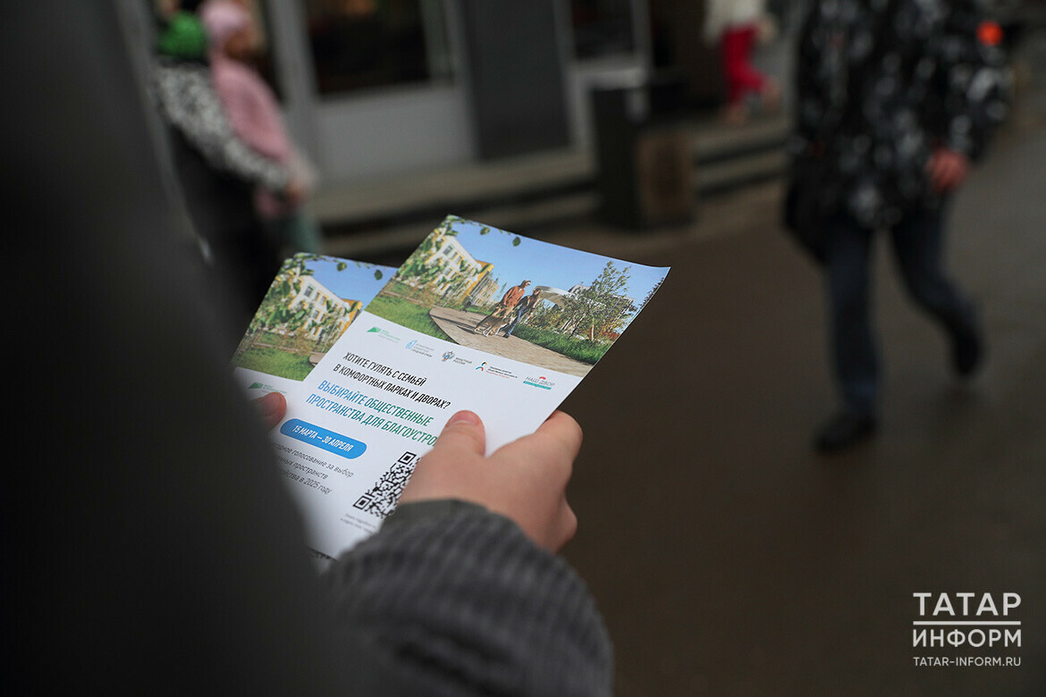 В Казани, рядом со сходом на станцию метро «Яшьлек», прошла акция, посвященная голосованию за объекты для благоустройства в 2025 году. Подробнее о пространствах-участниках и нюансах голосования прохожим рассказывали волонтеры. Также они напомнили о площадках, на которых желающие смогут отдать свой голос.