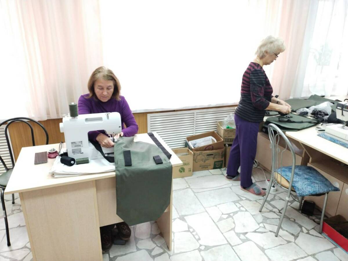 Материалы иногда помогают закупать предприниматели, спонсоры, но в основном женщины вкладывают собственные средства. Посильную помощь оказывают пенсионеры. Цех работает с 9 до 13 часов дня.