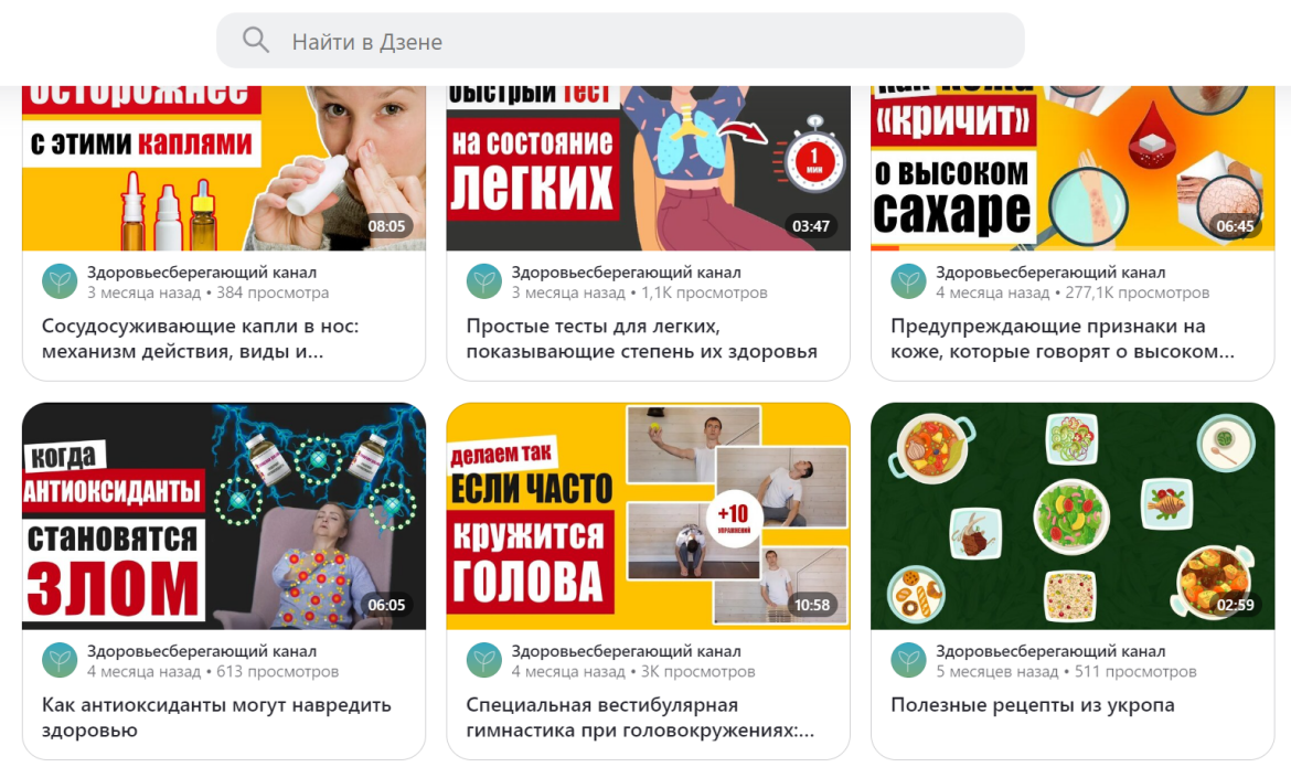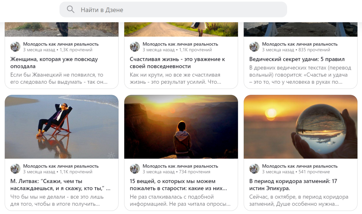 Иллюстрации: скриншоты главных страниц каналов в «Дзен»