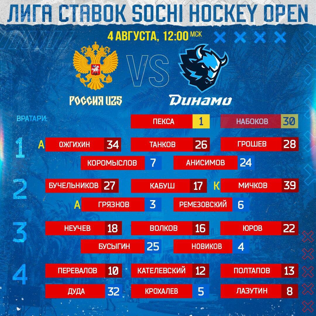 Воспитанники «Ак Барса» голкипер Вячеслав Пекса и форвард Дмитрий Кателевский попали в стартовый состав национальной команды России по хоккею U-25 на матч против минского «Динамо» в рамках предсезонного турнира Sochi Hockey Open.