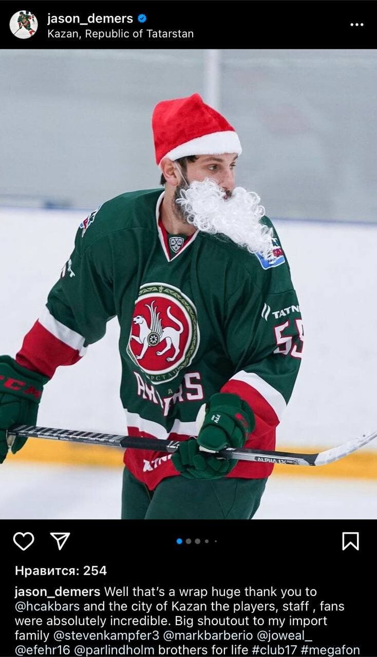 Защитник «Ак Барса» Джейсон Демерс на своей странице в Instagram опубликовал пост, посвященный своему уходу из команды. Напомним, канадец подписал контракт с казанским клубом в декабре 2021-го года, который завершился с окончанием сезона.