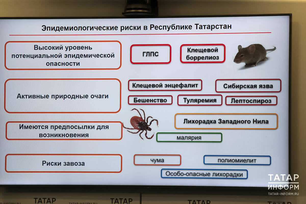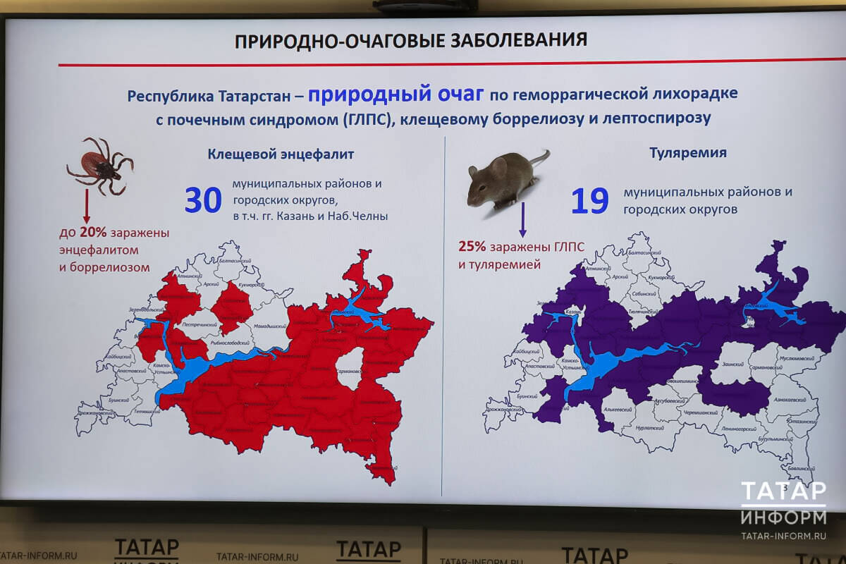 «Основные меры профилактики природно-очаговых инфекций, которые реализуются в республике, – централизованные обработки территорий. К ним приступят, когда растает снег. Нужно отметить, что им подлежит не вся территория РТ, а наиболее значимые и посещаемые места – парки, скверы, летние оздоровительные организации, кладбища», – отметила Любовь Авдонина.