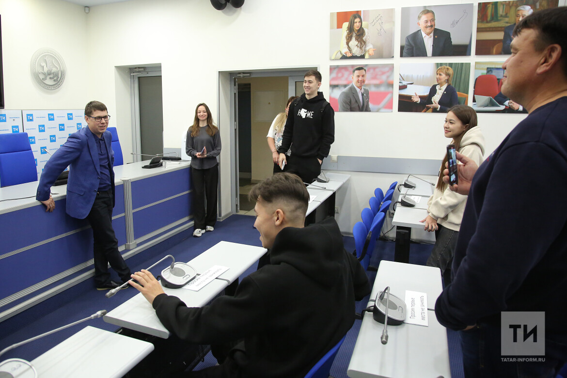 Экскурсия началась по татарской традиции с чаепития, а затем гости прошли в зал для пресс-конференций. Гендиректор АО «Татмедиа» Шамиль Садыков напомнил, какую важную роль играют сегодня соцсети