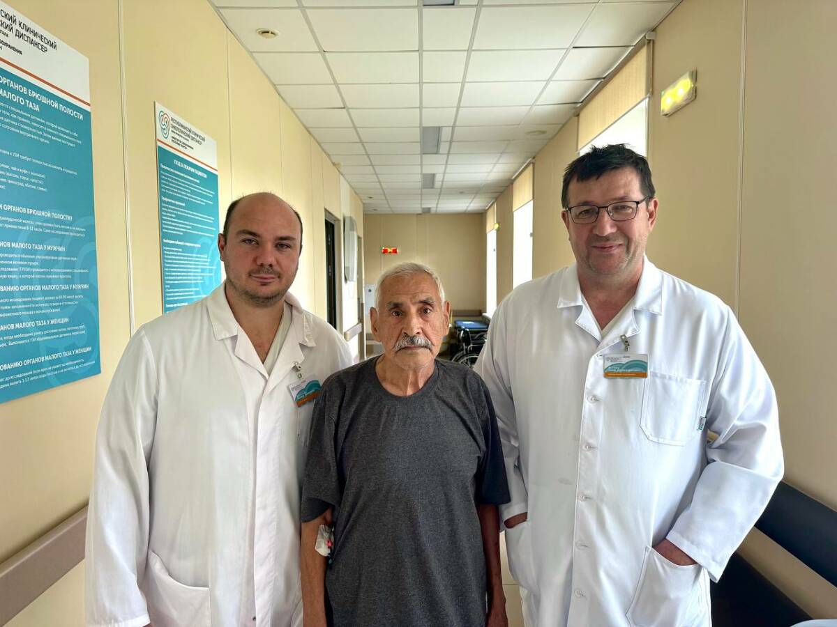 Перед пациентом и его семьей встал трудный вопрос: стоит ли в таком возрасте идти на риск большой операции? После беседы с хирургом пациент и его близкие приняли решение довериться врачам полностью.