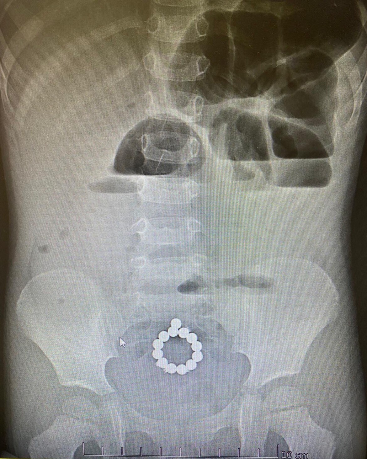 Это уже второй случай в этом медцентре за год, когда дети глотают большое количество магнитов. Те же хирурги спасли девочку, которая проглотила 13 магнитов-шариков. В ее случае магниты прошли по желудочно-кишечному тракту, притянулись друг к другу и образовали цепочку-кольцо вокруг кишечника.
