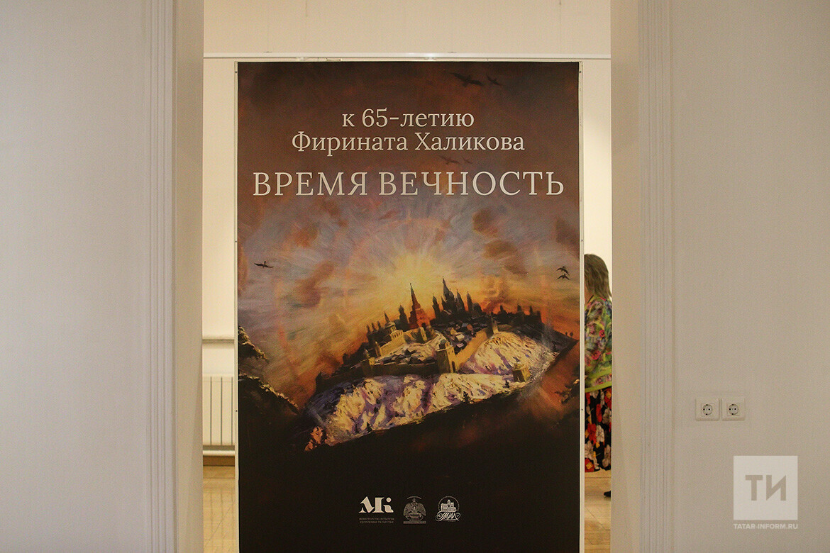 Выставка живописи с названием «Время вечность» открылась в галерее «Хазинэ», филиале Музея ИЗО РТ на территории Казанского Кремля. Около полусотни картин единственного в Татарстане академика Российской академии художеств Фирината Халикова разместились в четырех залах второго этажа. Центральное произведение выставки — большое полотно «События октября 1552 года» (месяц взятия Казани Иваном Грозным — прим. Т-и).