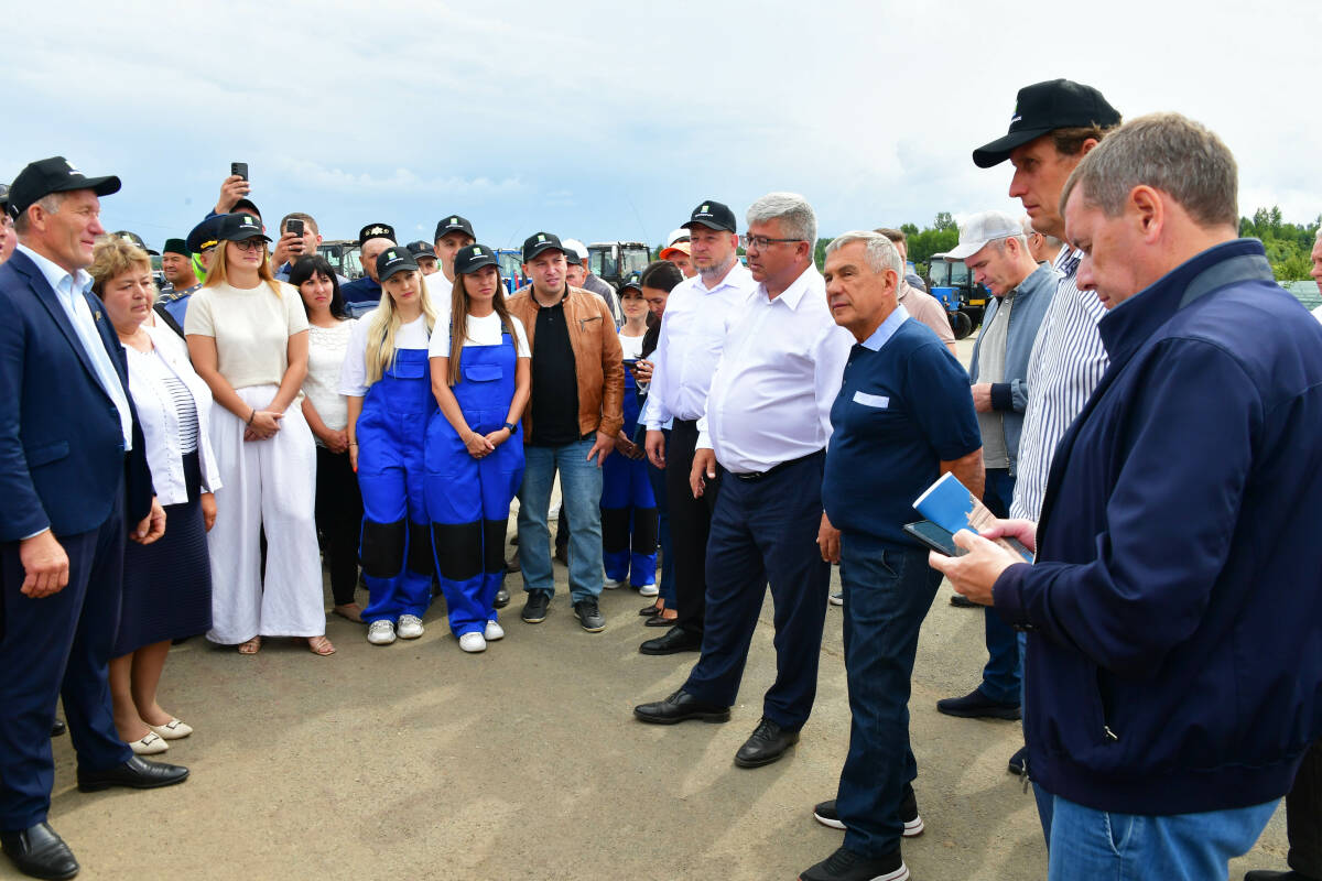 Там же, на территории КФХ, состоялась встреча Рустама Минниханова с активом Зеленодольского района. Глава района Михаил Афанасьев рассказал о состоянии дел в аграрном секторе, отметив, что средняя урожайность зерновых в текущую уборочную кампанию составляет 34 ц/га. Заместитель Премьер-министра – министр сельского хозяйства и продовольствия РТ Марат Зяббаров уточнил, что в Татарстане в целом убрано уже 40 процентов урожая зерновых.