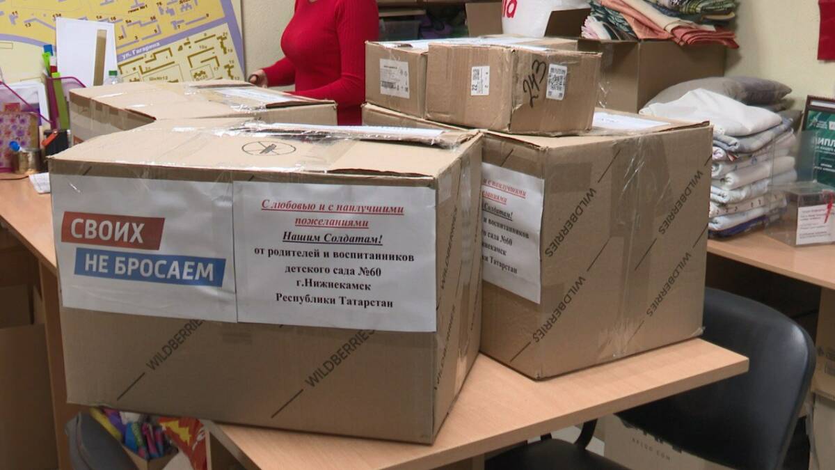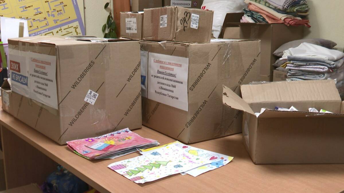 Медикаменты, мыло, детские рисунки и другие необходимые вещи – очередная партия гуманитарной помощи сегодня поступила в пункт сбора на Химиков, 72б в Нижнекамск. С посылками в центр пришли представители детского сада №60. Родители, сотрудники и сами дошколята собрали несколько коробок с вещами для участников СВО.