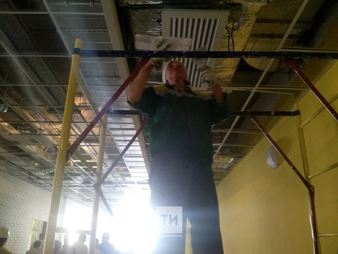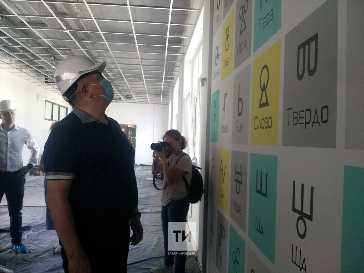 Магдеев заинтересовался их работой и даже собственноручно покрасил желтой краской квадратик, который позже будет встроен в интерьер. «Вот и я внес свою лепту в строительство этой школы», — пошутил Наиль Гамбарович.
