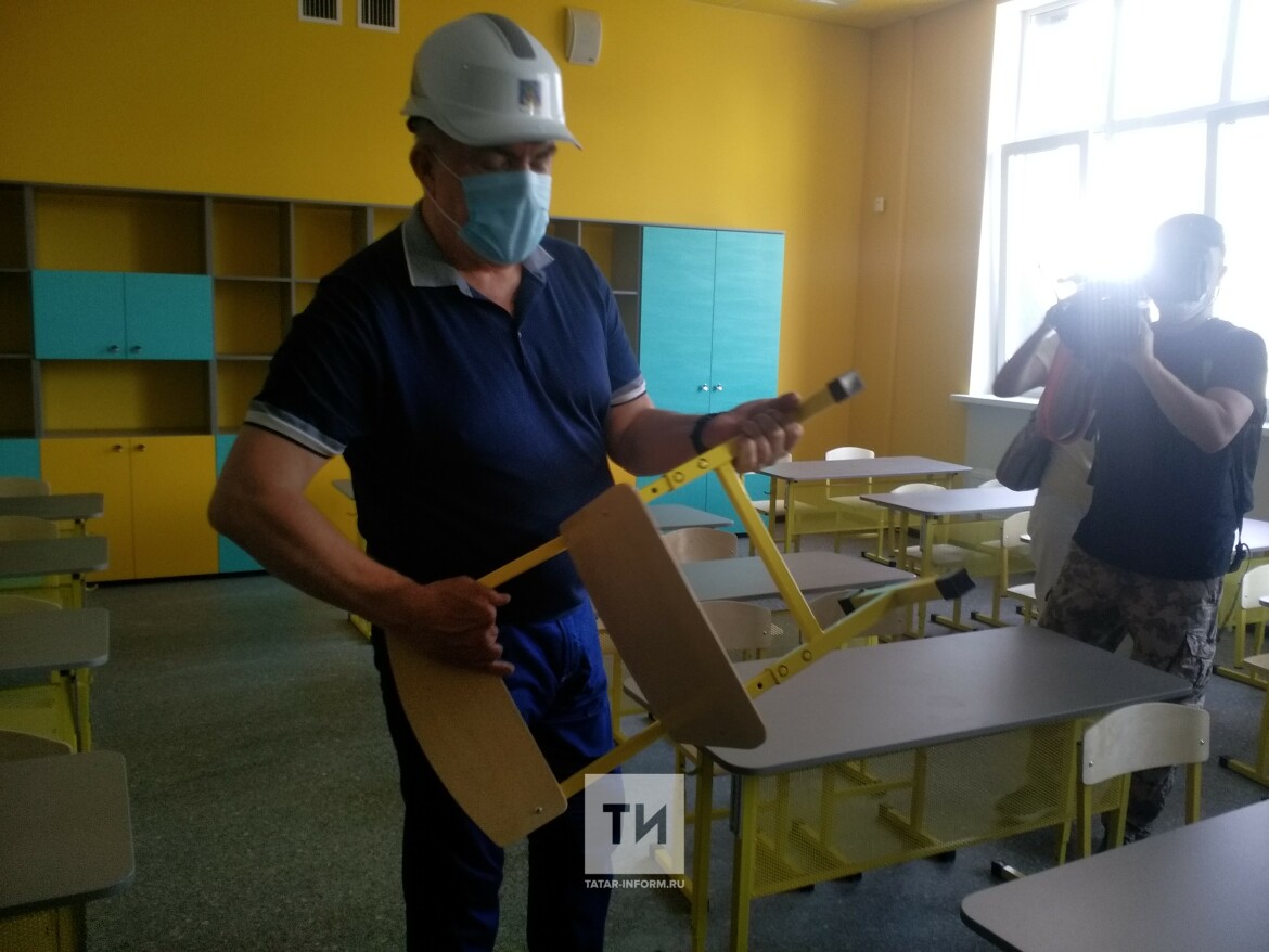 Магдеев осмотрел классы, в одном из них ему показали регулирующиеся «под ученика» парты и стулья. «Можно поменять угол наклона спинки стула и крышки стола. Мебель для школы заказали у местного производителя», — уточнила Медведникова.