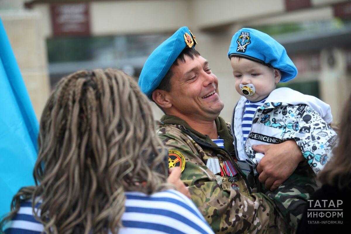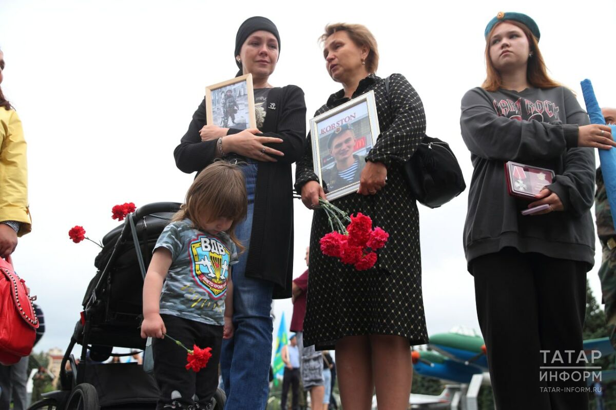 «Это мой муж, Рустем Галиев. Он подписал контракт в январе этого года, а в марте при штурме поселка Работино был ранен и погиб на поле боя. У нас осталась дочь, ей 2,5 года. Так получилось, что по контракту он пошел в ВДВ и этот праздник стал бы для него первый. К сожалению, он увидит его уже только сверху», – поделилась женщина.