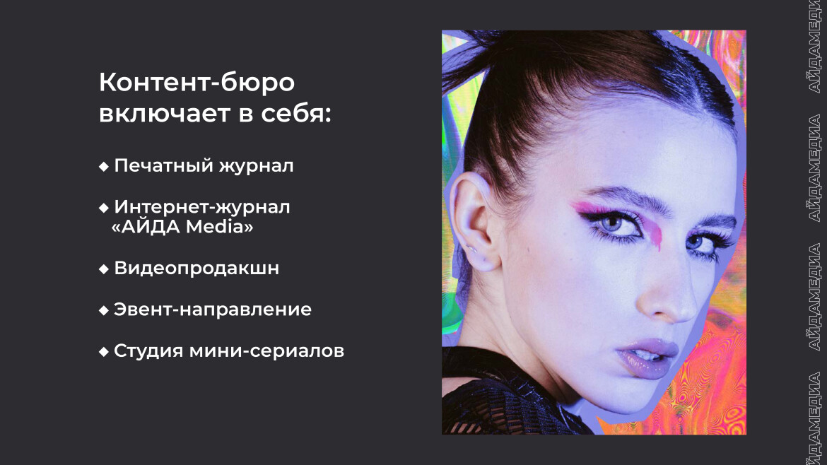 «В „Татмедиа“ пока нет проекта, который бы отвечал всем ожиданиям сегодняшней русскоязычной молодежи. Планируется, что это будет контент-бюро, в которое войдут печатный и интернет-журнал „Айда media“, видеопродакшн, ивент-направление и студия мини-сериалов. Контент будет создаваться на базе журнала „Идель“», — рассказала «Татар-информу» Рамзия Галимова.