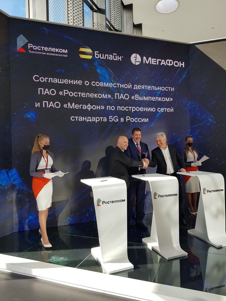 Соглашение в отношении совместного предприятия в рамках Петербургского международного экономического форума подписали президент «ВымпелКома» Рашид Исмаилов, генеральный директор «МегаФона» Геворк Вермишян и президент «Ростелекома» Михаил Осеевский.