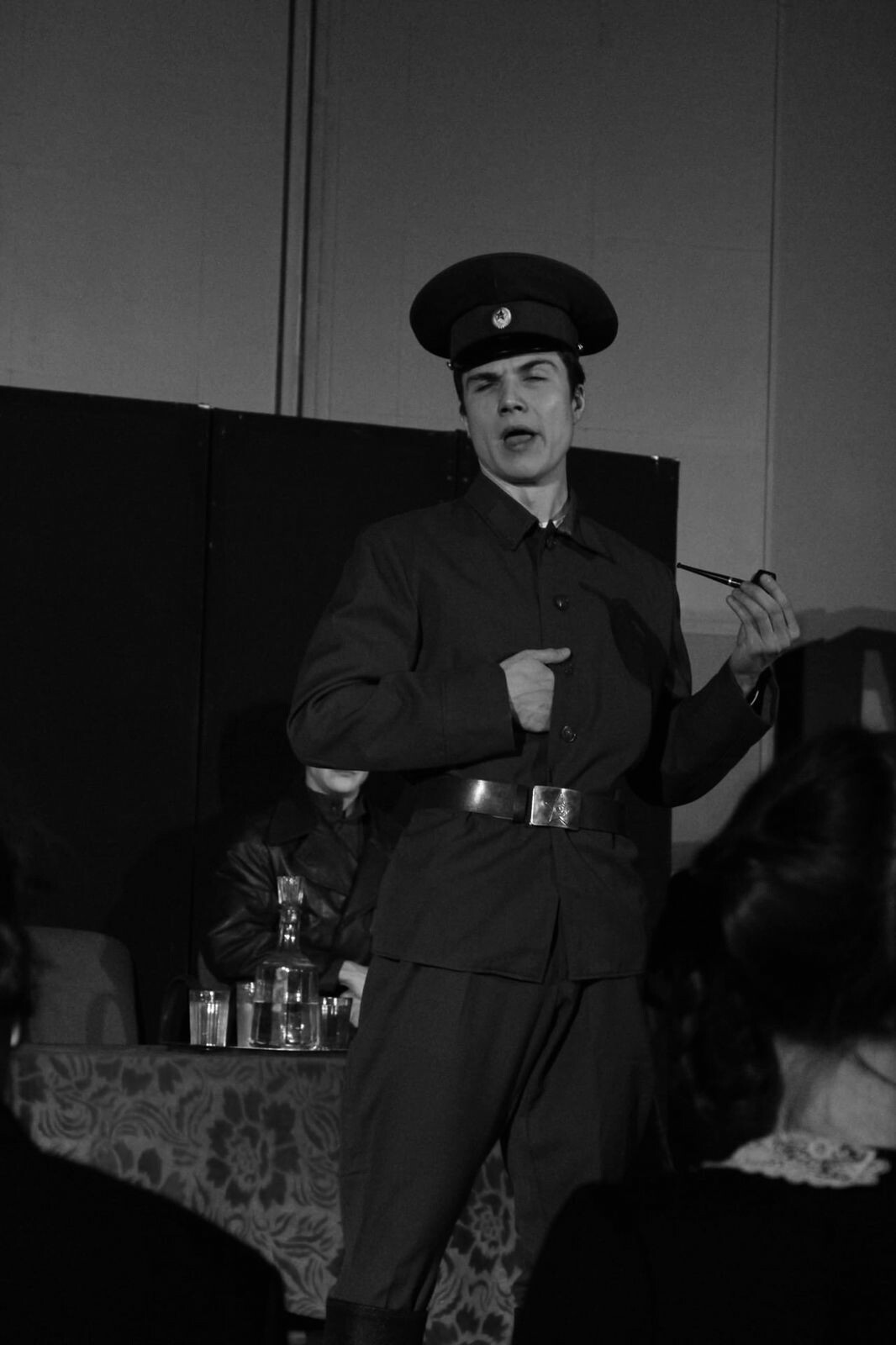 Звучащие в спектакле тексты подлинных документов с критикой их деятельности, а также сатирическая кантата Шостаковича «Антиформалистический раёк», являющаяся своеобразным ответом композитора на несправедливую критику, рисуют драматическую картину борьбы художника за сохранение человеческого достоинства и отстаивания своих творческих принципов. В спектакле звучит музыка Шостаковича и Рахманинова.