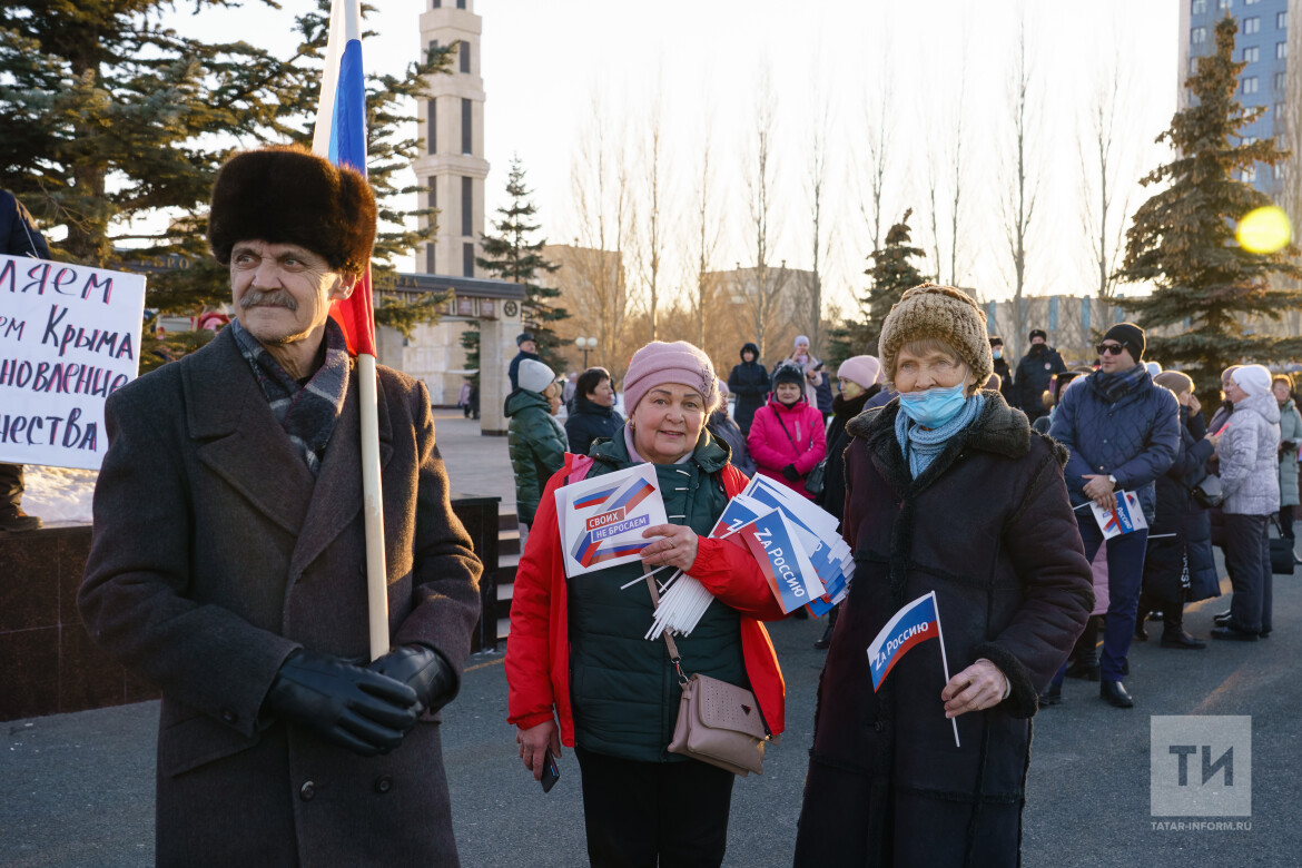 Жители столицы Татарстана приняли участие в ежегодном праздновании воссоединения Крыма с Россией. Восьмая годовщина этого исторического события приобрела особое объединяющее значение для общества, поскольку проходит во время спецоперации России на Украине. Подробности с казанской акции «Крымская весна» – в репортаже «Татар-информа».