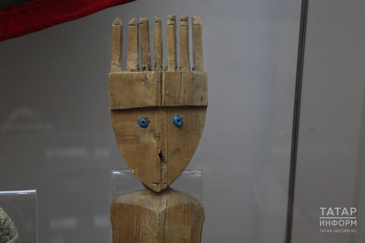 На выставке представлены и предметы шаманского культа: маски, ритуальные ковши, пояса, посохи и кафтаны шаманов и деревянные «сэвэны» – изображения духов-помощников.
