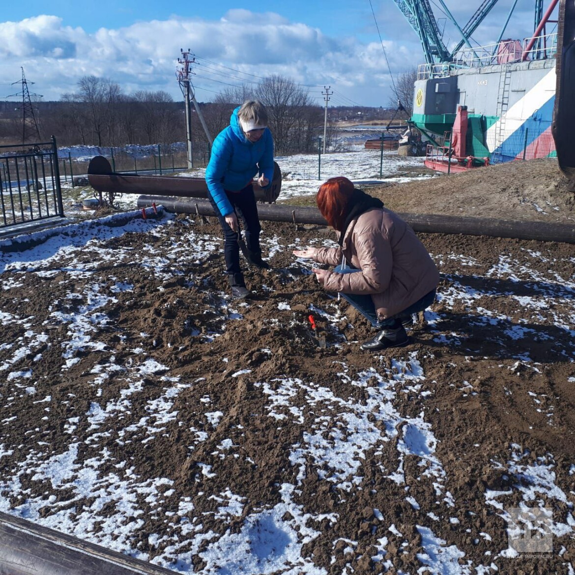 Рядом с пирамидой есть небольшой мини-карьер (песочница), в котором можно с помощью специальных лопаточек поискать маленькие кусочки янтаря. Нам удалось найти несколько совсем маленьких кусочков. На площадке и рядом можно увидеть оборудование, которое использовалась для добычи янтаря в XIX-XX веках.