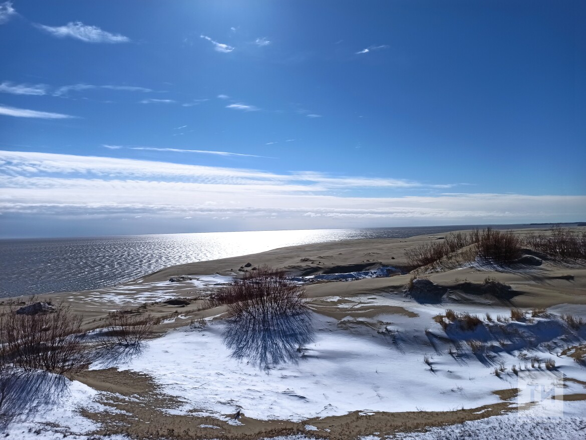 Из леса мы направились на высоту Эфа. Со смотровой площадки открывается шикарнейший вид на дюны и залив. Глаз оторвать невозможно... Этот белый, мягчайший песок, его настолько много, он так удивительно лежит, что просто не верится, будто все это сотворила матушка-природа. Кажется, дюны – это то, на что можно смотреть вечно. Меня восхитили их величие, красота, сила…