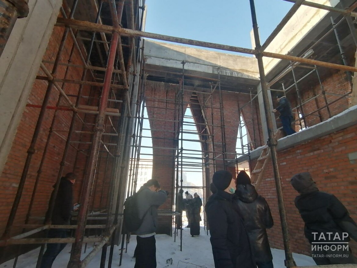 Чтобы посмотреть, как движется процесс строительства, участники конференции пошли на строительную площадку. И будущая мечеть, и храм, действительно, очень похожи, но уже на этой стадии строительства видны их отличия – у церкви закругленные окна, а у мечети такие же, в виде арки, но заостренные наверху.