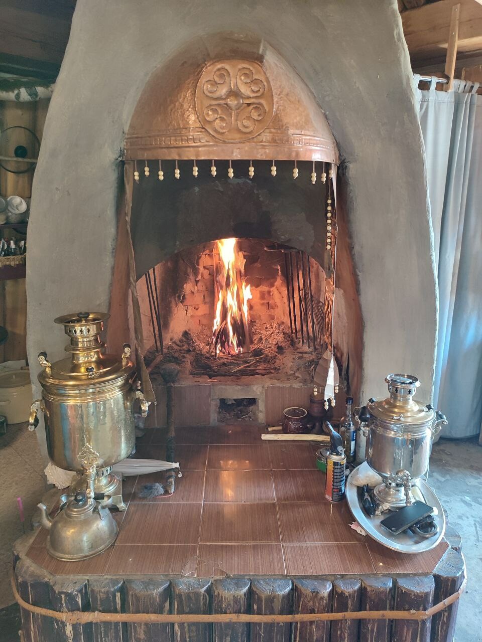 Кроме тотемного животного, священным у якутов также считается огонь, поэтому особое место в балагане отводят для камелька — очага в форме женского головного убора. «В камельке мы готовим еду, жарим карасей, утку готовим. В зимнее время он дом отапливает», — отметила хозяйка дома.