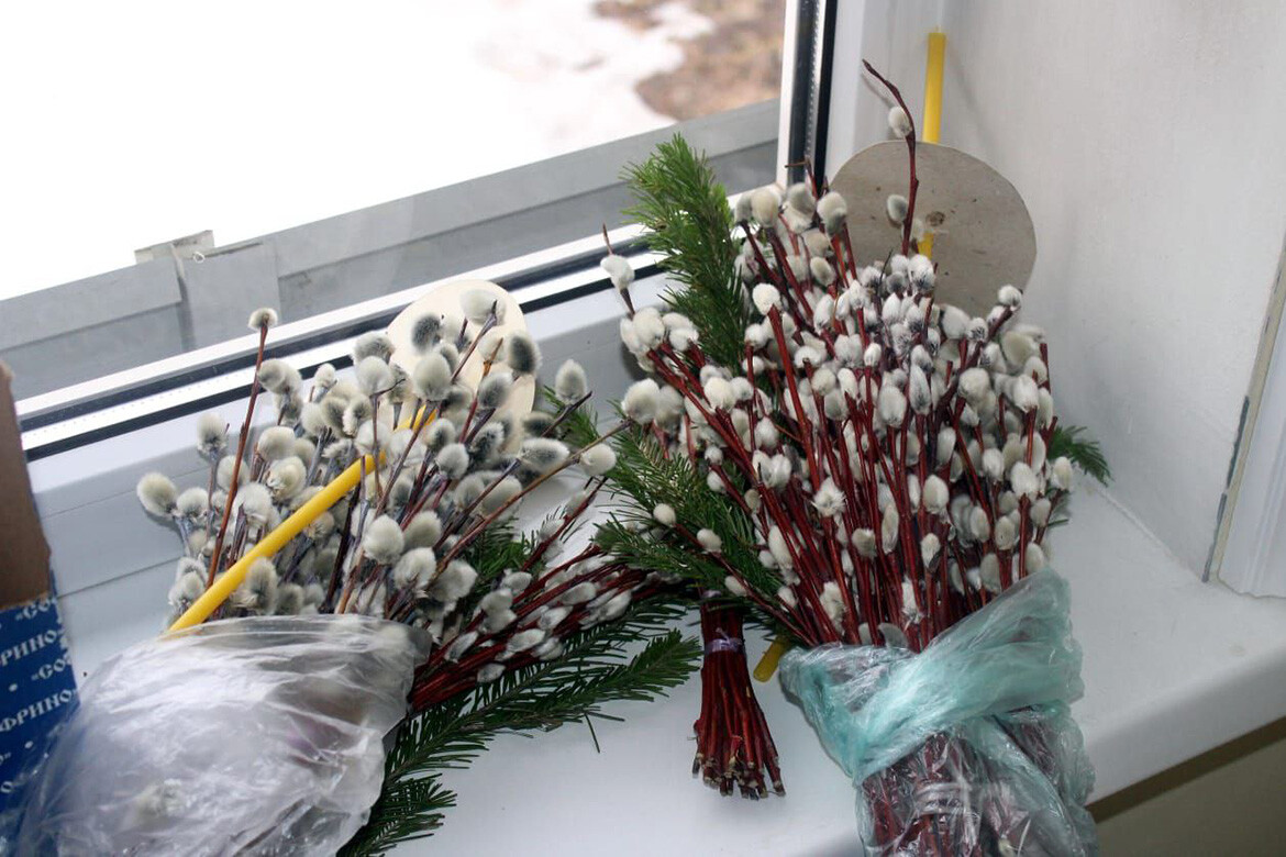 Однако отец Александр не забывает и о местных традициях, поэтому для прихожан все-таки заказывает веточки вербы, которые обязательно освящает.