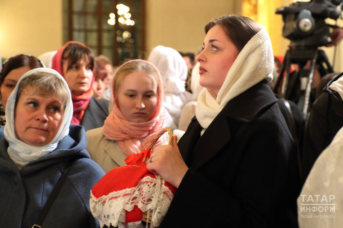 Торжественное богослужение состоялось этой ночью в соборе Казанской иконы Божией Матери. Возглавил его митрополит Казанский и Татарстанский Кирилл. Вместе с владыкой встретить Светлое Христово Воскресение пришли сотни верующих. В этом году тех, кто хотел присутствовать на службе, было больше, чем обычно, – все желающие не смогли уместиться в храме и остались молиться на улице.