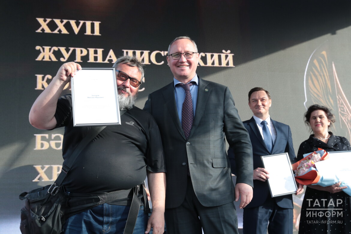 Приз в номинации «Верность профессии» вручили руководитель Республиканского агентства по печати и массовым коммуникациям «Татмедиа» Айдар Салимгараев и председатель Союза журналистов РТ Ильшат Аминов.