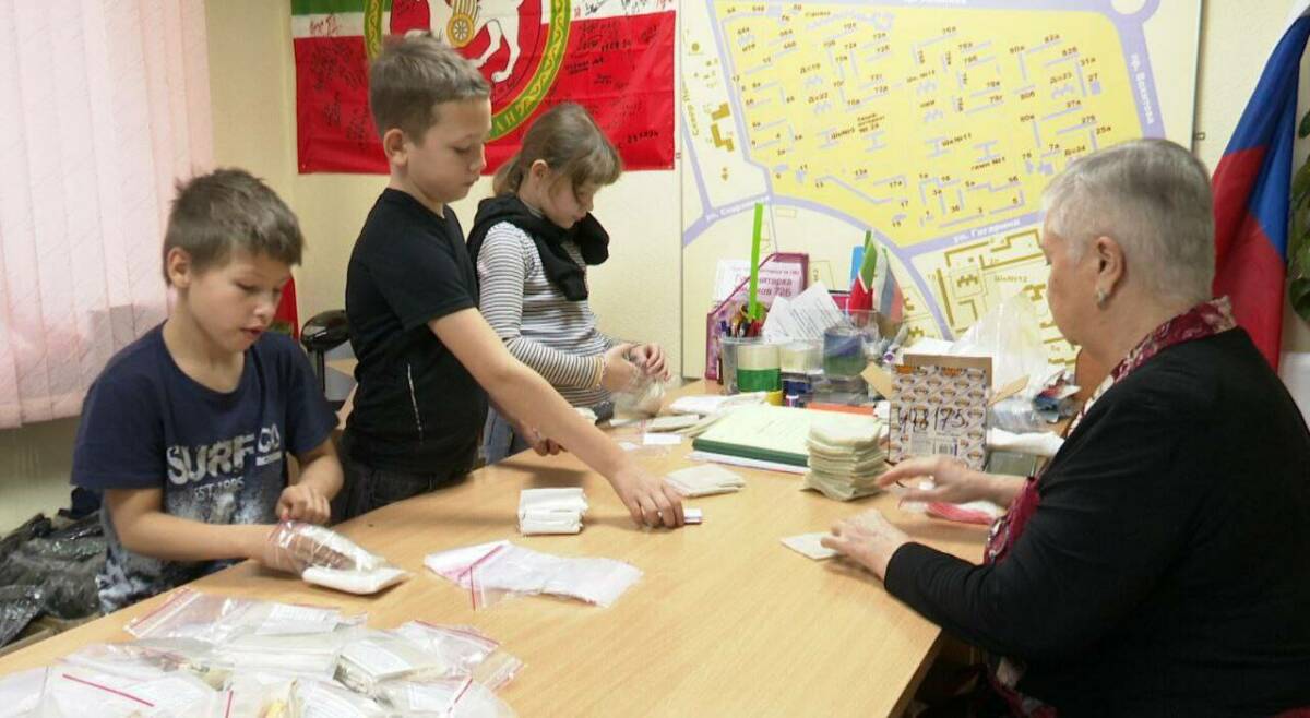 В Нижнекамске ребята, проживающие в микрорайонах №6, 7 и 8 каждый день приходят в пункт сбора гуманитарной помощи для бойцов СВО и помогают, чем могут. «Тимуровцы» изготавливают сухие души, помогают фасовать посылки, убирают мусор и убирают территорию от листвы и снега.