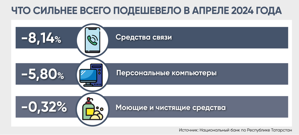 Как и в предыдущие месяцы, в апреле уровень инфляции в Татарстане в целом был на уровне Приволжского федерального округа (7,7%) и снова оказался ниже, чем в России (7,8%). По сравнению с мартом в республике цены выросли на 0,6%.