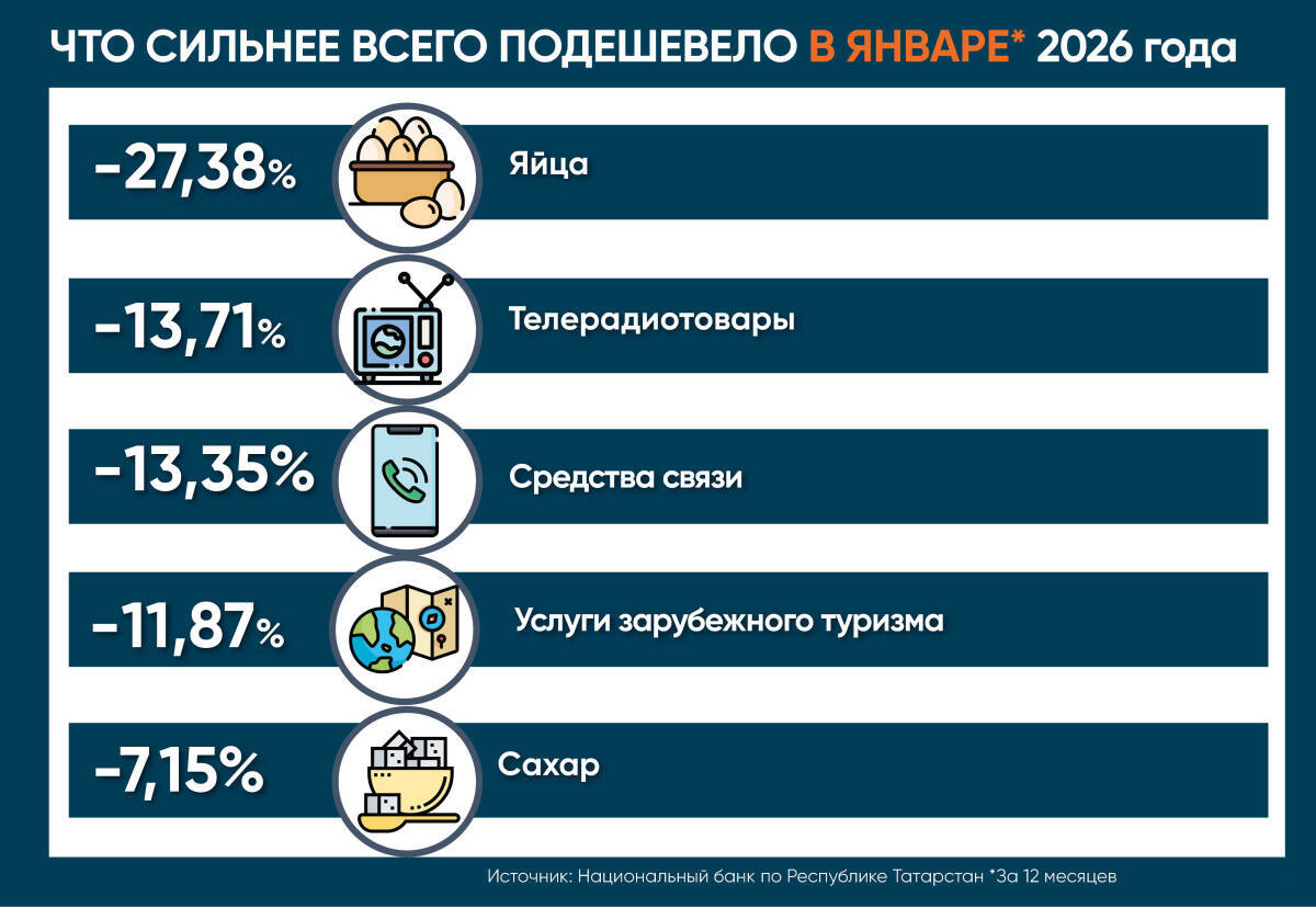 Годовая инфляция в Татарстане в январе подскочила с декабрьских 6,64% до 7%. Это по-прежнему выше, чем в целом по стране (6%) и по Приволжскому федеральному округу (6,76%), где показатели тоже выросли с итоговых за 2025 год. Подробности ожидаемого скачка – в ежемесячном обзоре аналитического центра «Татар-информа».
