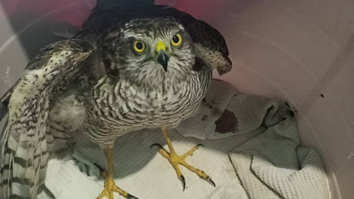 Жители вызвали специалистов, которые определили, что у ястреба сломано крыло – вероятно, он повредил его во время охоты.