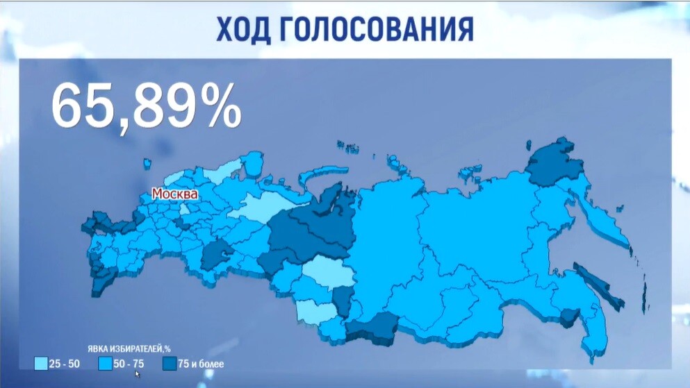 По России общая явка на выборы главы государства, которые проходят в стране с 13 по 17 марта, составляет 65,89%. Об этом свидетельствуют данные ЦИК РФ.