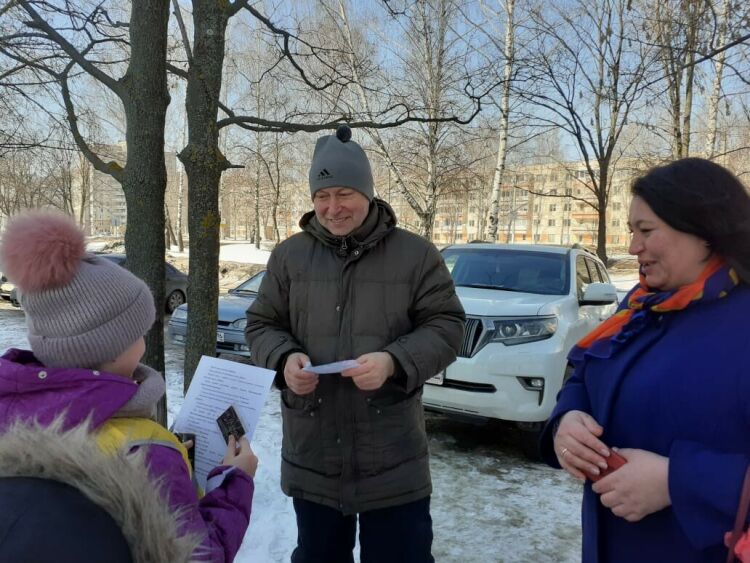 Ребята вместе с автоинспекторам раздали водителям яркие конверты и напомнили о безопасности на дороге.