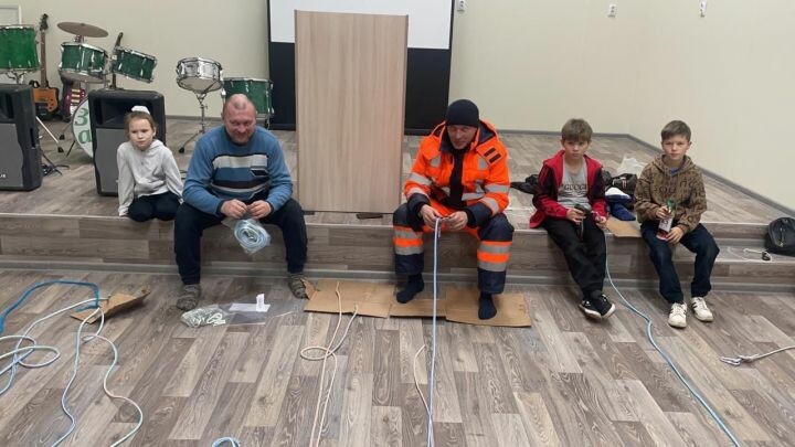 В рамках благотворительной акции было закуплено 3,5 тыс. метров веревки, 700 карабинов, из которых был сделан тактический шнур. Привязывать веревку к карабинам помогают участники военно-патриотического клуба «Юнармеец».