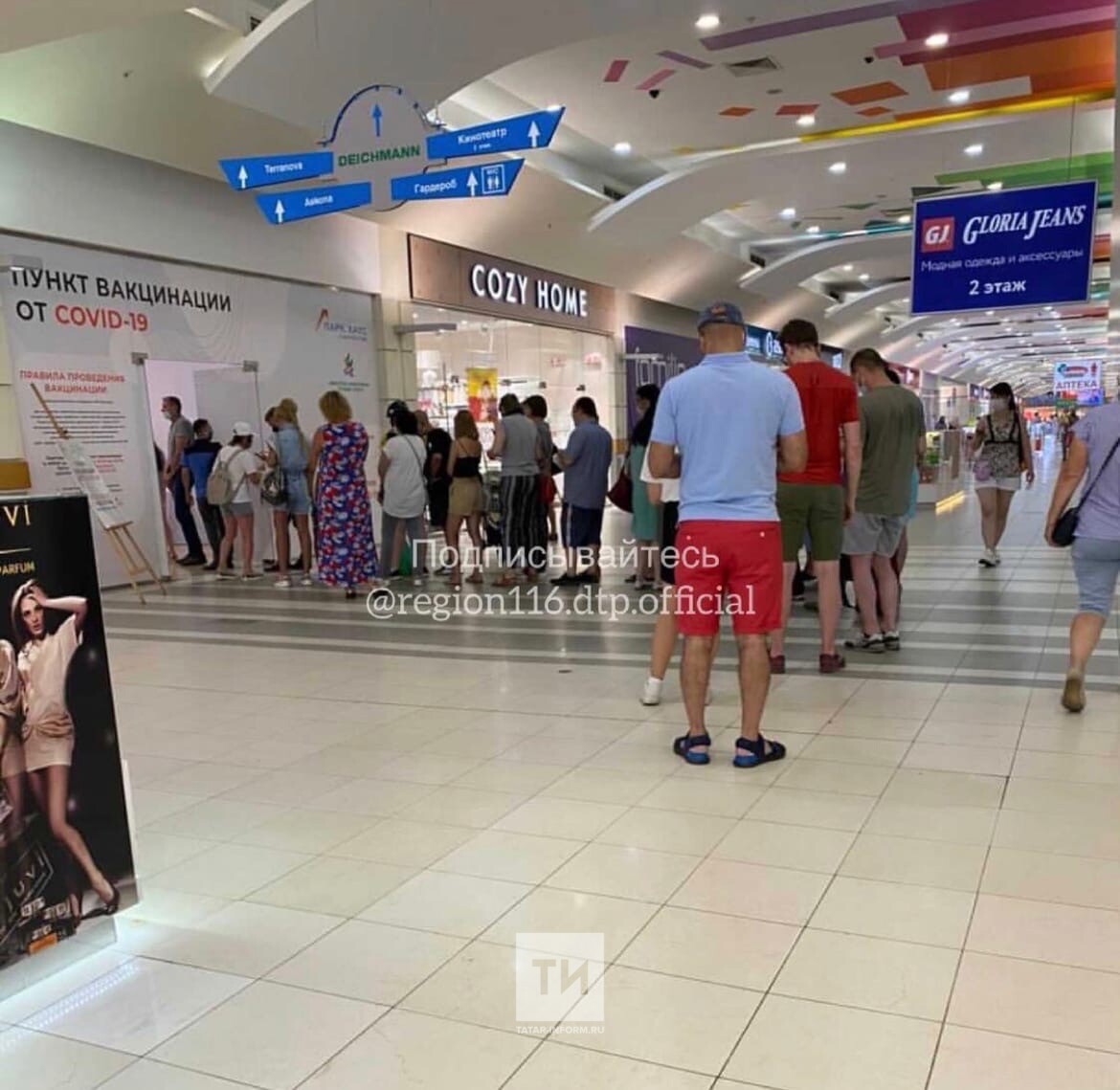 К слову, фото очередей на вакцинацию в торговых центрах накануне появлялись в социальных сетях.