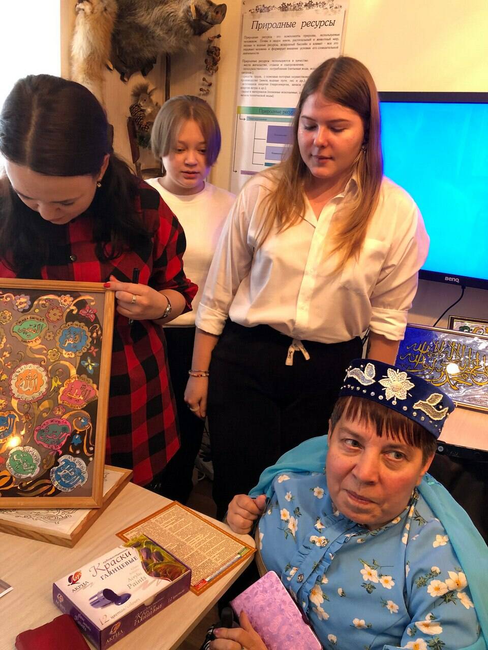 В доме супругов висят авторские работы хозяйки – татарские шамаили. Работы Рушании Гаязовой выставлялись во Дворце культуры и в краеведческом музее Лениногорска. Ее большая персональная выставка проходила в Казани, в мечети «Кул Шариф», в декабре 2020 года. Но сейчас Рушания все свое свободное время посвящает волонтерской работе.