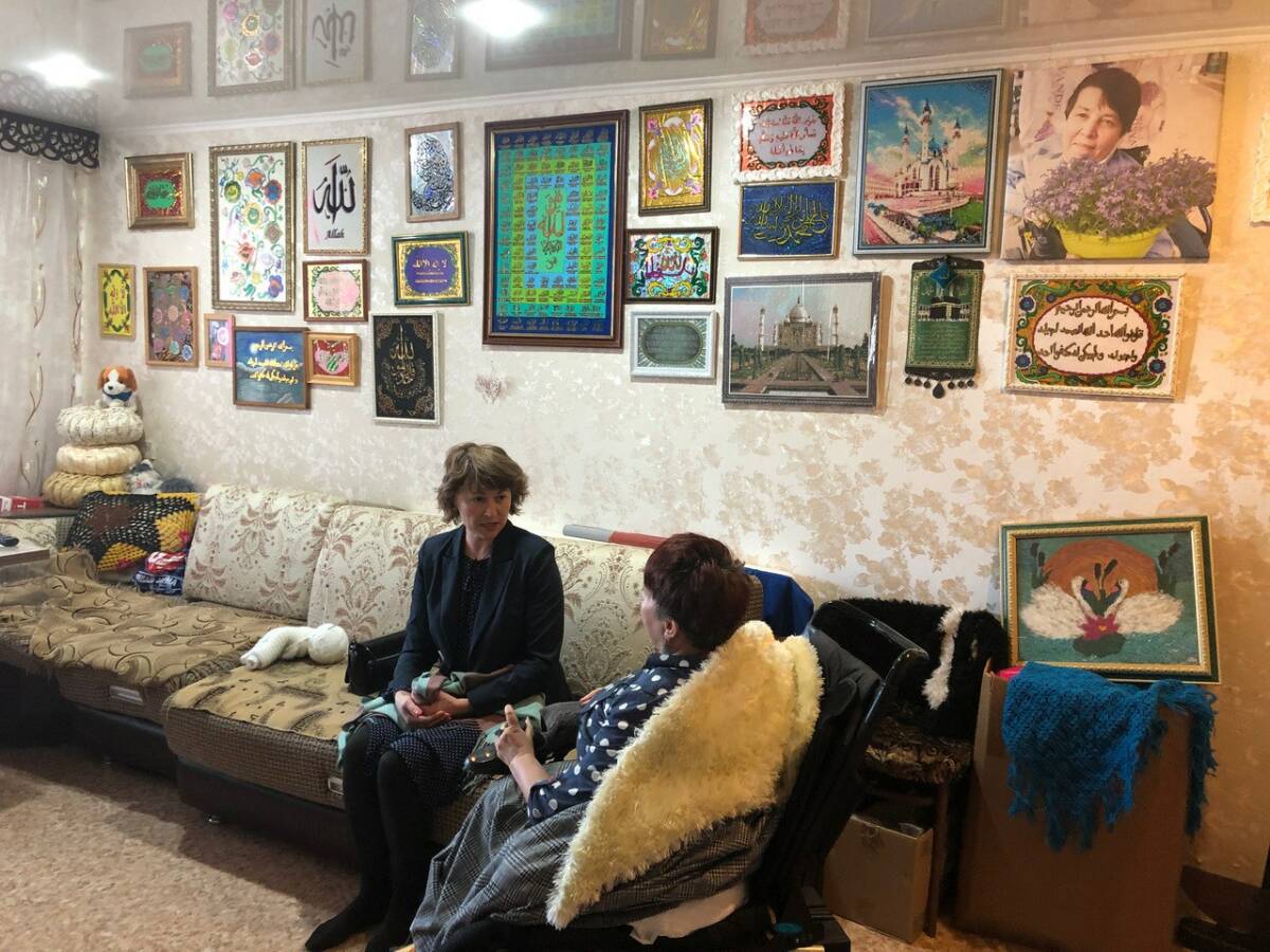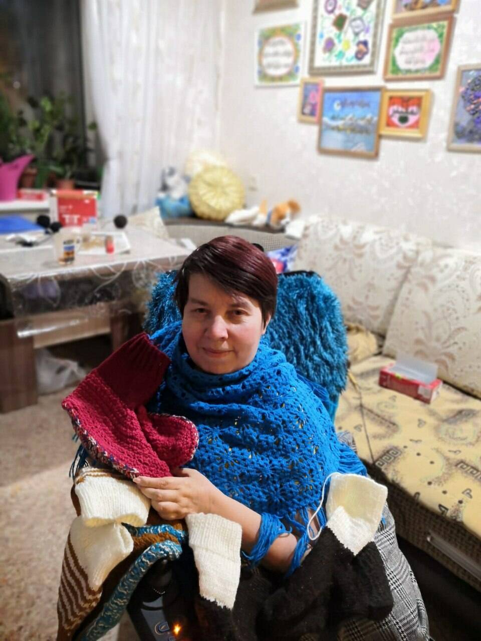 Инвалидное кресло, в котором Рушания Гаязова оказалась в детстве из-за перенесенной болезни, не мешает ей активно участвовать в волонтерской работе: она вяжет бойцам СВО мочалки. Рядом ее верный спутник жизни – Атлас. Он тоже взялся за спицы – вяжет солдатам носки.