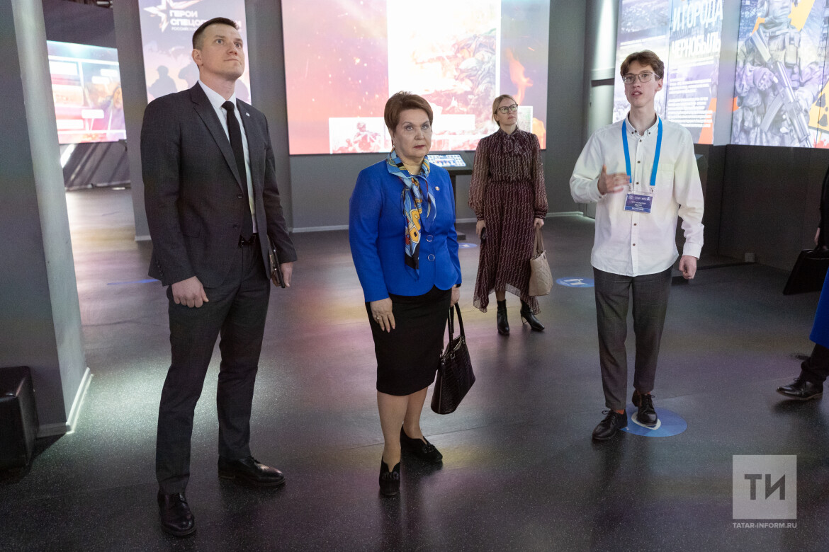 Перед началом пленарного заседания почетным гостям провели экскурсию по экспозиции патриотического проекта-выставки «Герои спецоперации». Позднее здесь состоялась церемония награждения победителей конкурса «Право.Community», организованного Лигой студентов РТ.