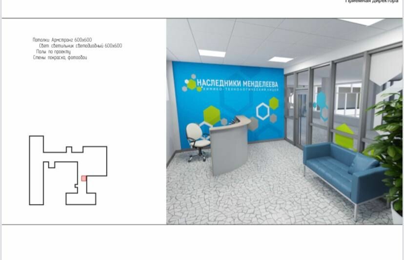 Дизайн-проект фасада будущего химико-технологического лицея Менделеевска был создан архитектурным бюро «Абау». Он учитывает современные тенденции в оформлении интерьеров учебных заведений: прозрачные стены в части классов, лобби, химическая и биологическая лаборатории, актовый зал-трансформер.