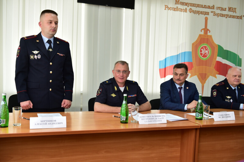 Заместитель министра внутренних дел по Татарстану Алексей Завгороднев представил личному составу Межмуниципального отдела МВД России «Верхнеуслонский» нового начальника – подполковника полиции Алексея Бортникова.