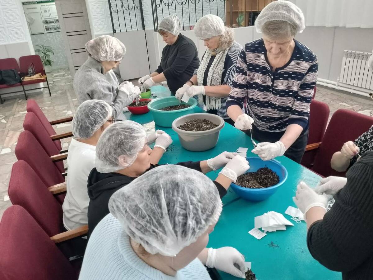 Активными участницами стали жительницы села. Они собственноручно собрали и подготовили лекарственные растения – душицу, мяту, зверобой, листья смородины, цветки липы и другие травы. В готовый ароматный микс добавили щепотку черного чая, после чего расфасовали его в тысячу индивидуальных пакетиков.