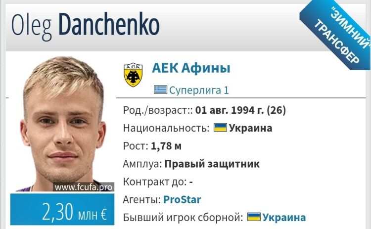 (Казань, 31 января, «Татар-информ»). Защитник «Рубина» Олег Данченко, который в этом сезоне играл за ФК «Уфа» на правах аренды, подписал контракт с греческим клубом АЕК. Об этом сообщает пресс-служба казанской команды.
