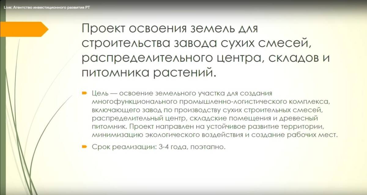 Запланировано строительство промышленно-логистического центра, который будет включать завод по производству сухих строительных смесей, распределительный центр, складские помещения и древесный питомник.