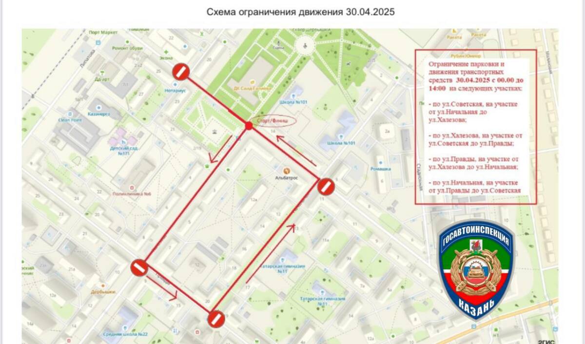 30 апреля в казанском поселке Дербышки ограничат движение транспорта из-за 83-й легкоатлетической эстафеты, посвященной 80-летию Победы в Великой Отечественной войне. Об этом сообщили в городской Госавтоинспекции.