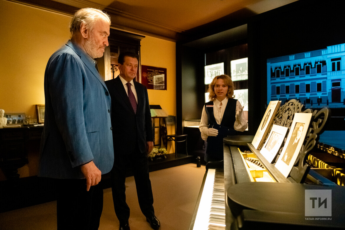 Валерий Гергиев с особым интересом познакомился с Музеем истории музыкальной школы №1 имени Чайковского. Он занимает небольшое пространство в цокольном этаже здания, но наполнен не только исторически интересными и ценными экспонатами, но и специально разработанным уникальным мультимедийным контентом. Например, здесь есть рояль 1887 года, за которым, известно точно, два концерта сыграл сам Сергей Рахманинов, посещая Казань в 1910 году с «музыкальной инспекцией». Прикоснулся к его клавишам и Валерий Гергиев.