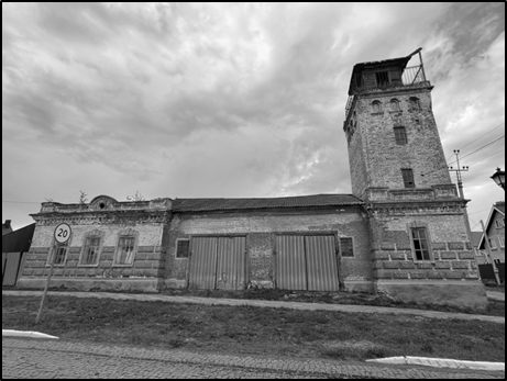 Бывшая пожарная часть находится по адресу: ул. Ленина, 22. Это Г-образное в плане одноэтажное кирпичное здание под скатной кровлей с трехярусной пожарной каланчой на углу, ризалитами для служащих и западающими объемами холодных помещений и конюшен. Объект представляет собой локальную архитектурную и градостроительную доминанту.