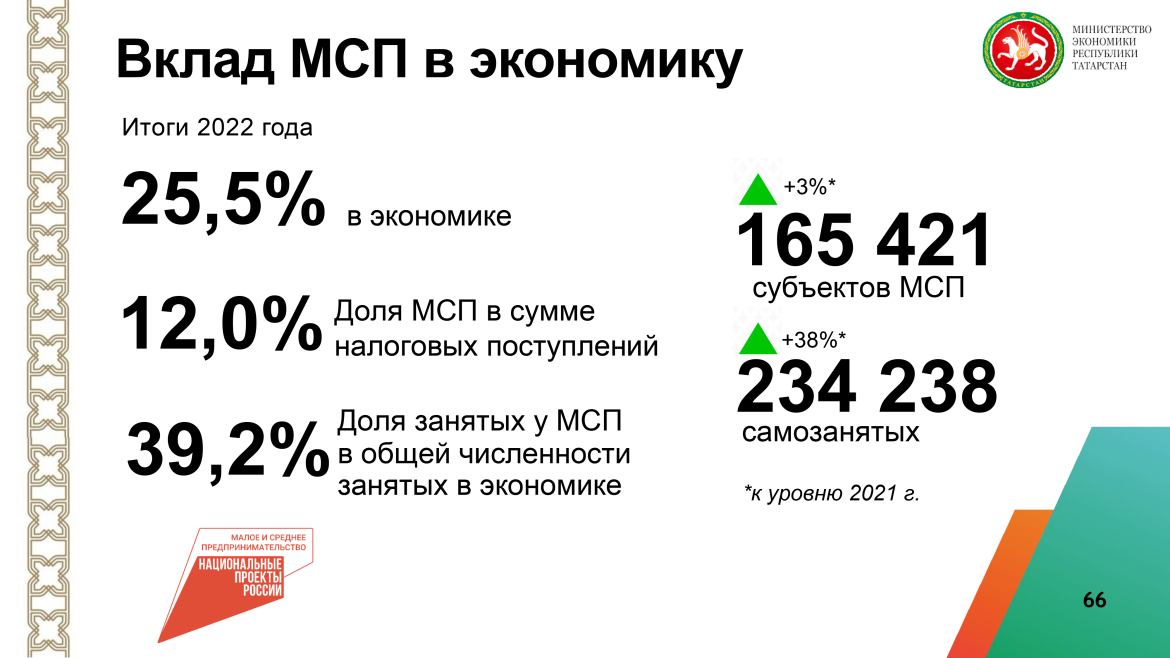 В зоне ответственности Минэка и развитие малого и среднего предпринимательства. Уже сейчас этот сектор занимает 25% в экономике, а его доля в налоговых поступлениях составляет 12%. Предприниматели обеспечивают занятость почти 40% от общей численности работающих. За прошлый год, несмотря на все пертурбации, число субъектов МСП в Татарстане выросло на 3%, до более 165 тыс., еще больше – на 38%, стало в республике самозанятых, которых насчитывается более 234 тыс. Правда, Мидхат Шагиахметов специально подчеркнул, что налоговым органам необходимо пресекать практику перевода в такой статус наемных работников, что, видимо, практикуется достаточно широко.