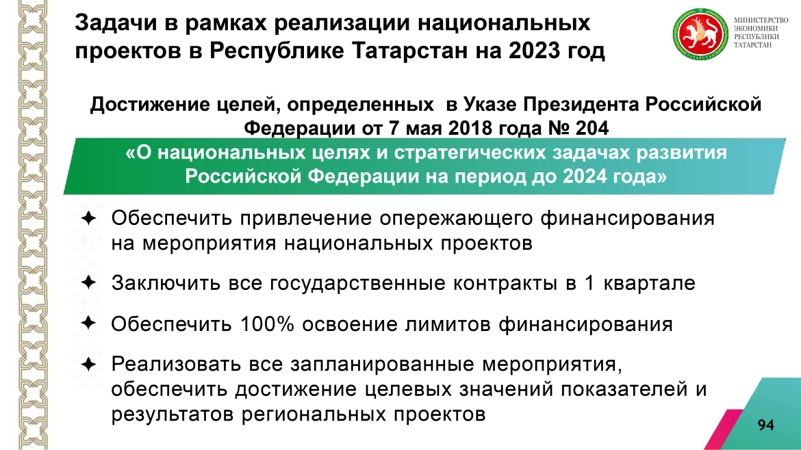 Эти задачи, подчеркнул Мидхат Шагиахметов, остаются актуальными и в 2023 году. Главная цель выглядит крайне амбициозной – довести объема ВРП до 4 трлн рублей. Добиться этого в том числе планируется за счет сохранения темпов развития малого и среднего предпринимательства (МСП), сбалансированного развития муниципальных образований, а также продолжения эффективной реализации национальных проектов и государственных программ. Другими словами, речь снова идет как о максимальном использовании внутренних ресурсов, так и о максимальном же расширении внешних инструментов для обеспечения экономического роста.